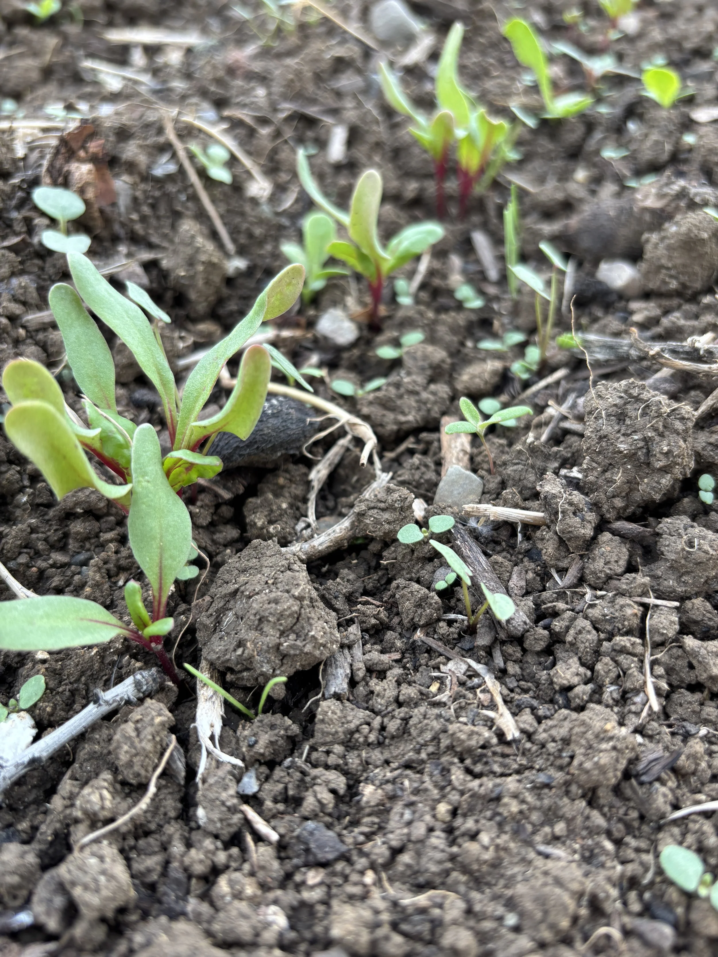 It took just a couple of days for the quickest direct seeded crops to germinate but now the slower carrots and beets are starting to germinate. It is a relief to see them pop out of the soil after almost two weeks of waiting.